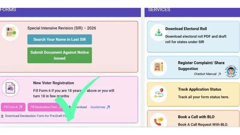 অনলাইনে ভোটার তালিকার নাম তুলতে হলে প্রথমে আপনার মোবাইল ,কম্পিউটার বা ল্যাপটপে যেকোন একটি Browser খুলতে হবে। , ফের পর শাস বক্সে Voters service Portal লিখতে অনুসন্ধান করুন। অথবা সরাসরি https://voters.eci.gov.in ওয়েবসাইটে প্রবেশ করুন ।