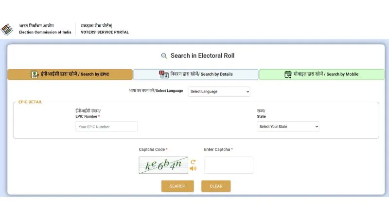 ওয়েবসাইট খুললে প্রথমে Search by EPIC অপশনটি দেখতে পাবেন ।