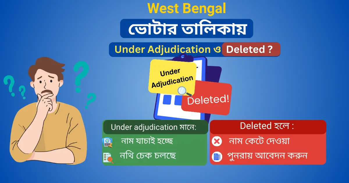 West Bengal Voter list Under Adjudication বা Deleted কেন দেখাচ্ছে ? এর মানে কি এবং ভোটার তালিকায় নাম তুলতে হলে কি করতে হবে বিস্তারিত আলোচনা করা হলো –